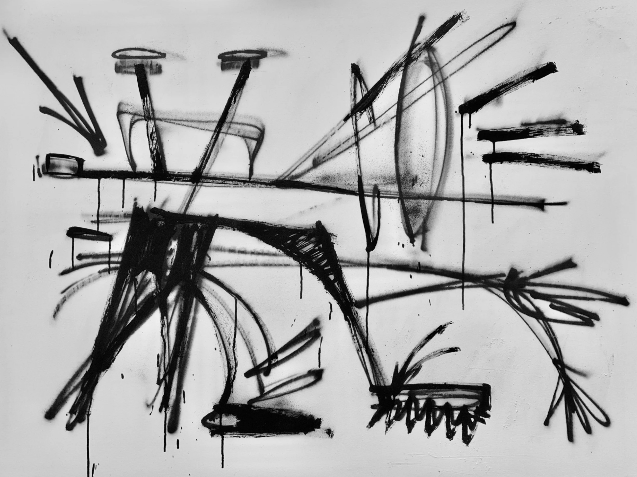 View fullsize   Hoppin’ Out The Taxi, 2023   24” x 18”  Acrylic, ink, spray paint and white-out on canvas  $700    INQUIRE